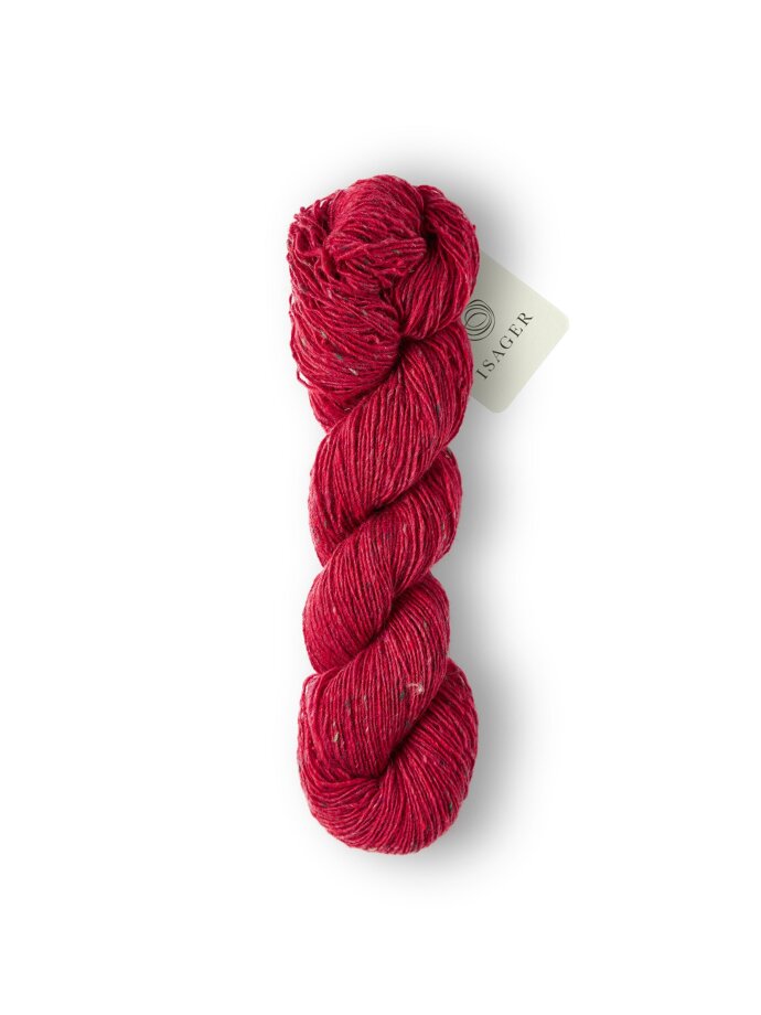 Isager Tweed er et entrådet garn med en blanding af uld og mohair. Garnet har et råt udtryk, men mohairfiberen gør det blødt og giver et blankt skær. Garnet er pga. de små nister meget levende i den strikkede overflade. Da garnet er entrådet og derfor kun spundet i samme retning, kan det have tendens til at trække skævt, hvis der strikkes rundt på en rundpind. Strikkes garnet sammen med andre kvaliteter, kan det fint strikkes rundt på rundpind. Alternativt anbefales at strikke frem og tilbage.
