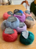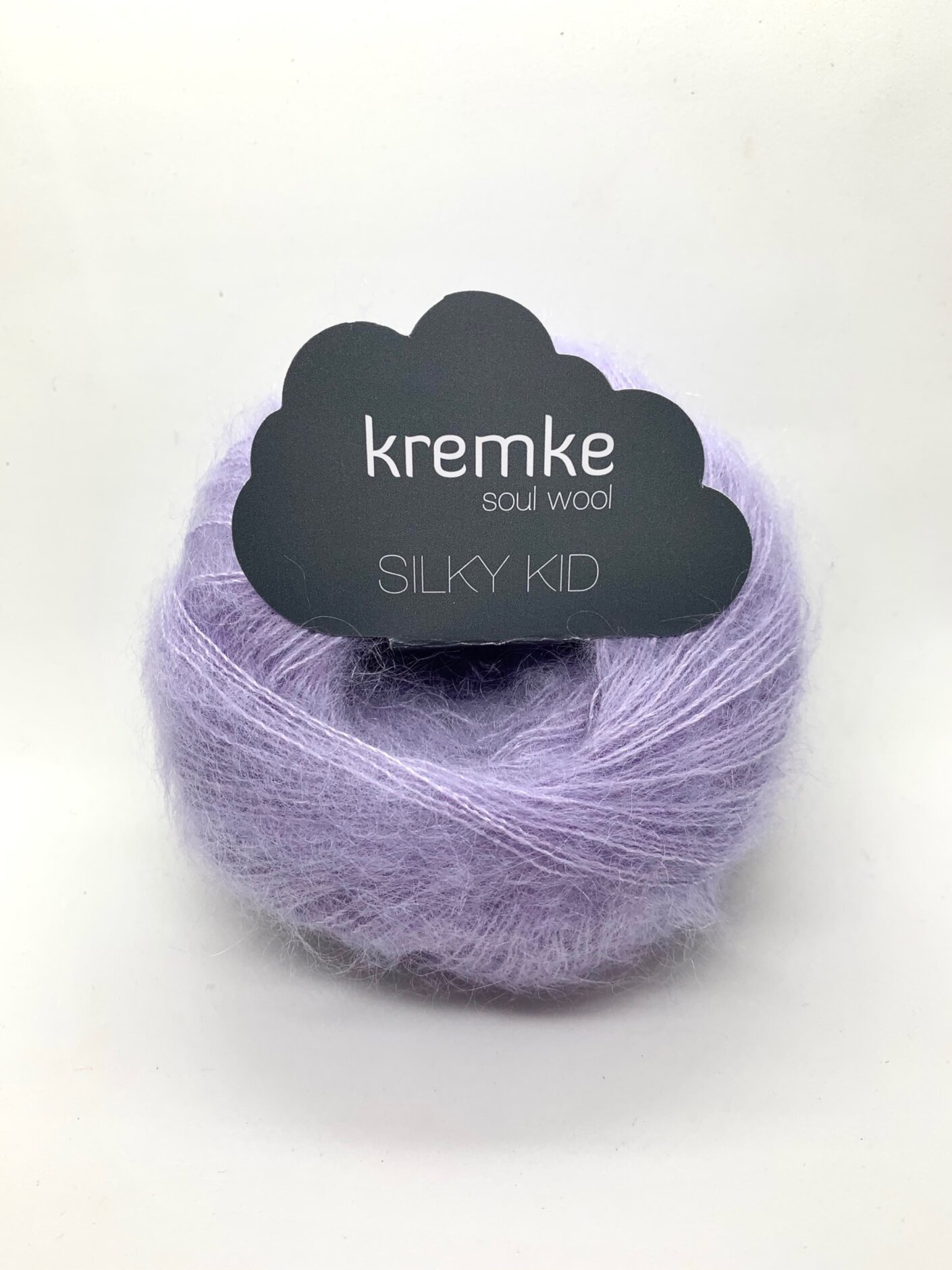 'Silky Kid' fra har en særlig farveskala, med særligt klare farver, og en ekstra blank overflade. Så hvis du ønsker at din silkmohair skal træde tydeligt frem med ekstra blank overflade, er det 'Silky Kid' du skal vælge. Silkmohair strikkes fint alene på pindestørrelser fra 2,5, og på tykke pinde med flere tråde - fuldstændigt afhængig af hvilket udtryk man ønsker det færdige arbejde skal ende med. Strikkes også ofte med andre garnkvaliteter.