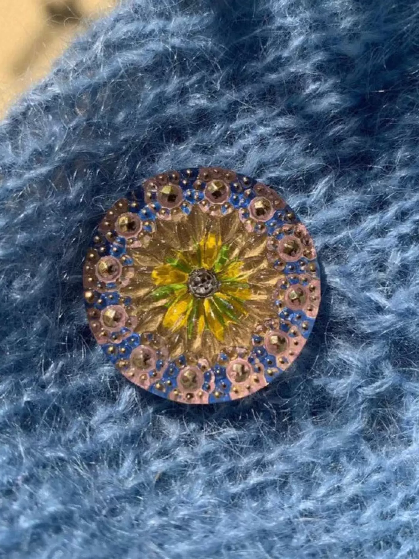 Endelig skal de håndmalede knapper brændes, inden de kan monteres på tøjet.