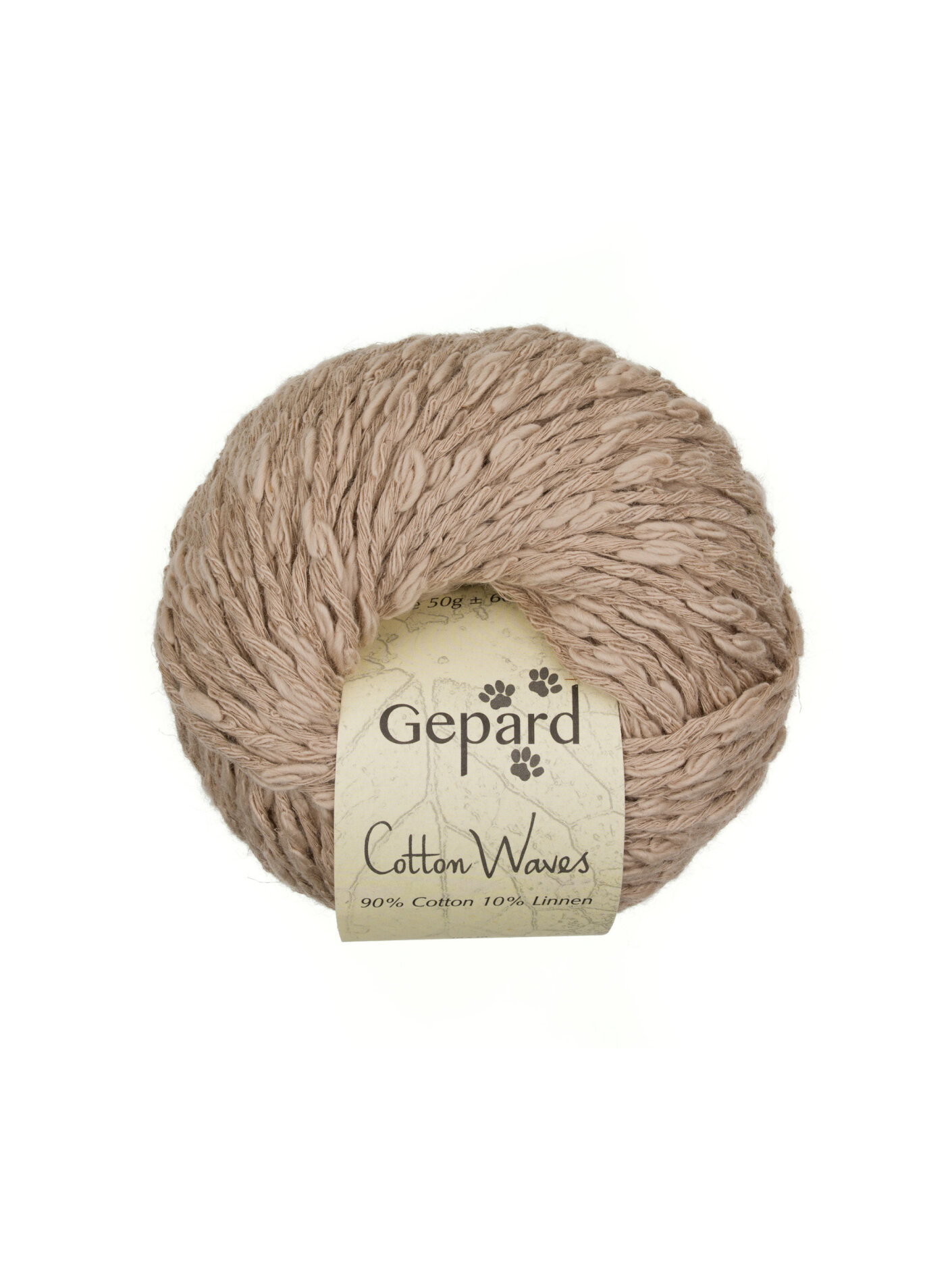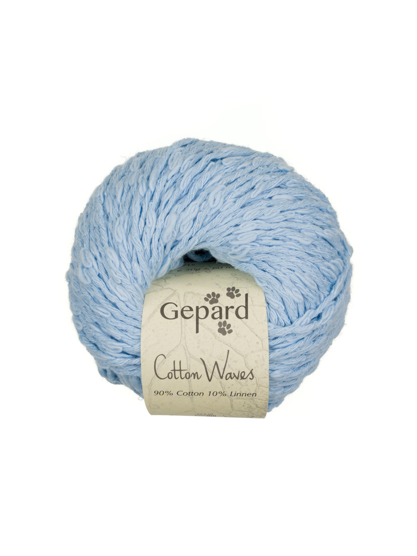 CottonWaves er et nyt bomuldsgarn fra Gepard Garn, som med sin bølgende struktur, minder lidt om både bouclé og flamégarn.