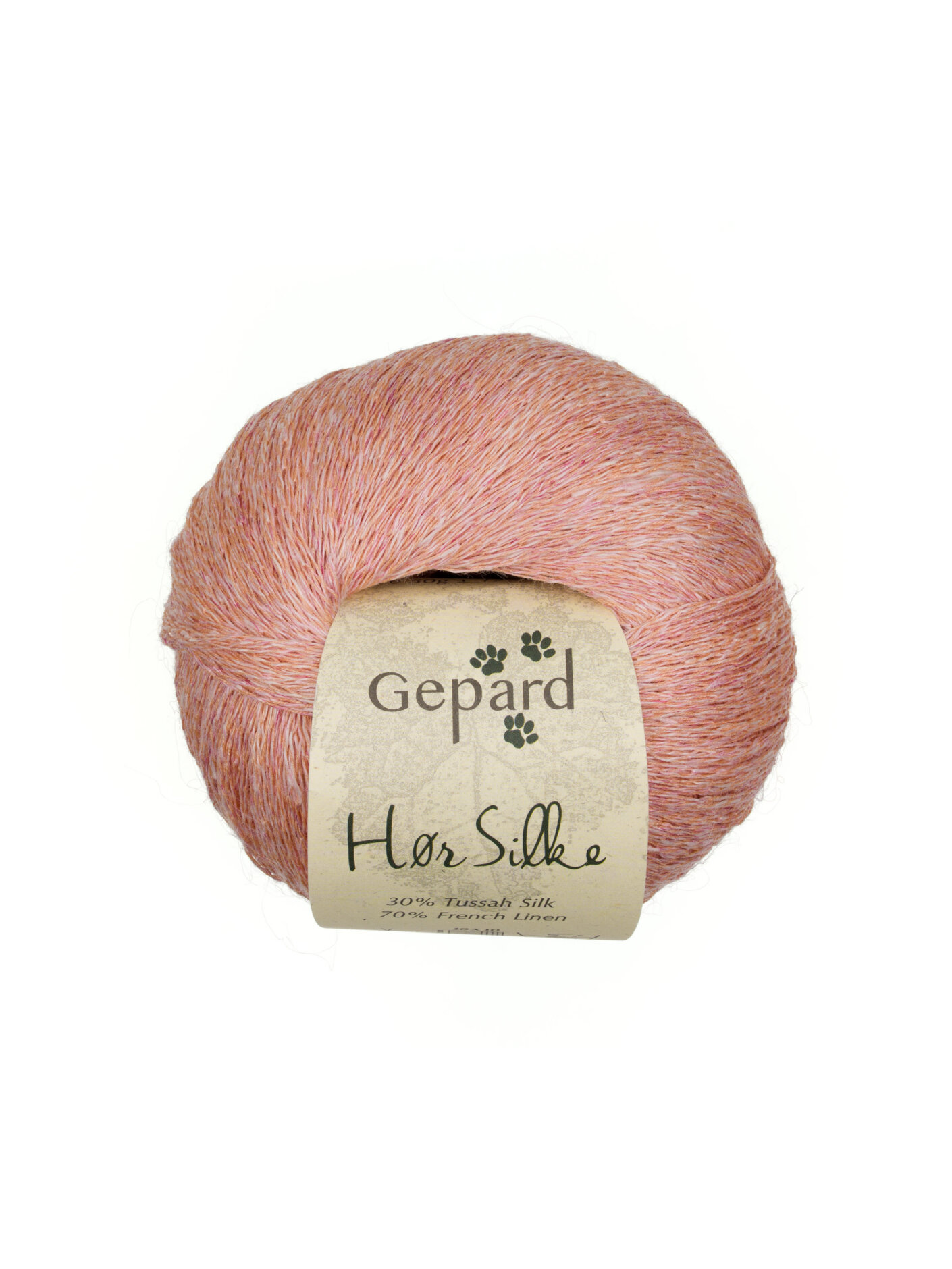 HørSilke er et nyt sommergarn fra Gepard Garn. Garnet har en meget let fibersammensætning, og kan fint strikkes på pinde, som man normalt vil synes er for tykke til garnet. Ser du nøje på garnet vil du opleve det liv der er i Hør Silke, fordi de tynde tråde af vildsilke og hør varierer en anelse i nuance og tykkelse og sammen skaber et sprødt maskebillede med en fantastisk tekstur.