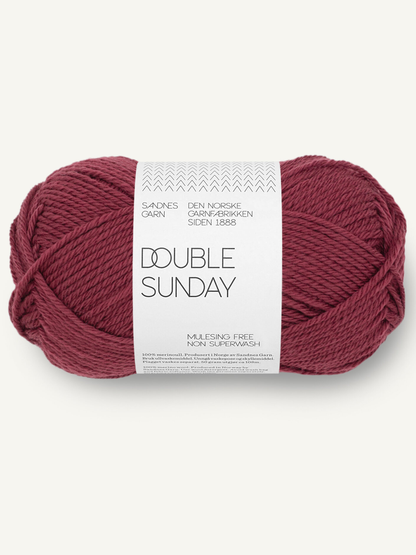DOUBLE SUNDAY består af 100% merinould og er det perfekte basisgarn; en tynd ikke-superwashbehandlet merinould. Garnet fungerer garnet rigtig fint både alene, og strikket sammen med andre kvaliteter - bl.a. Silk Mohair. Garnet anvendes rigtig fint til både baby, barn og voksen.