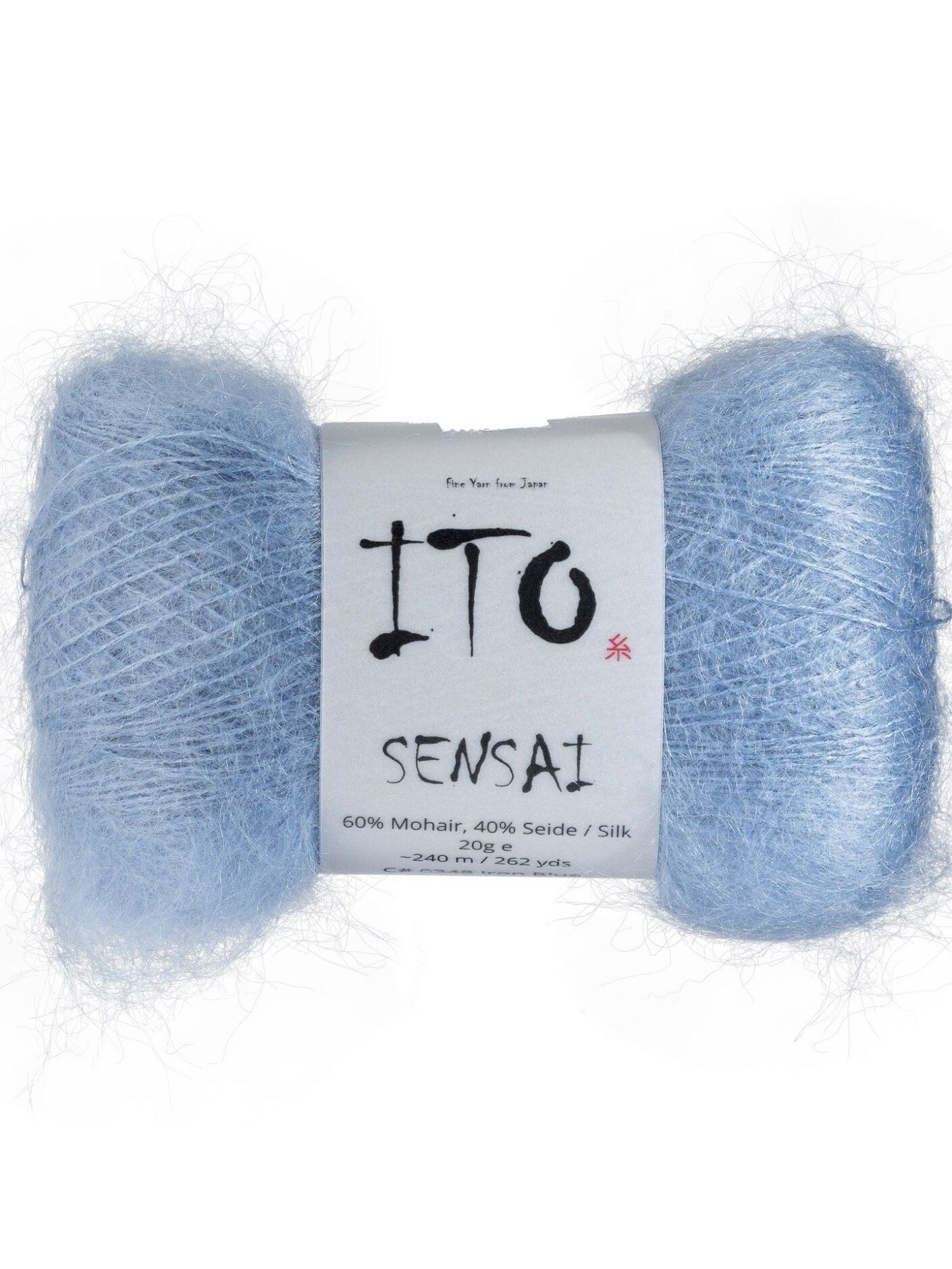 ITO Sensai er den fineste SILK MOHAIR på markedet. Den har en større silkeandel end de fleste andre silkmohair varianter, og dermed et mere glansfuldt udtryk i det færdige resultat. Løbelængden er længere; 240 meter, hvor de fleste øvrige tilsvarende kvaliteter løber ca. 210 meter.