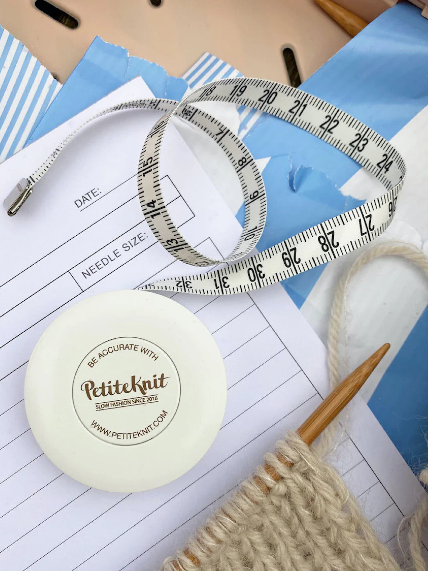 Målebånd med slip-let-rul-ind, når du trykker på knappen. Målebåndet måler i cm.