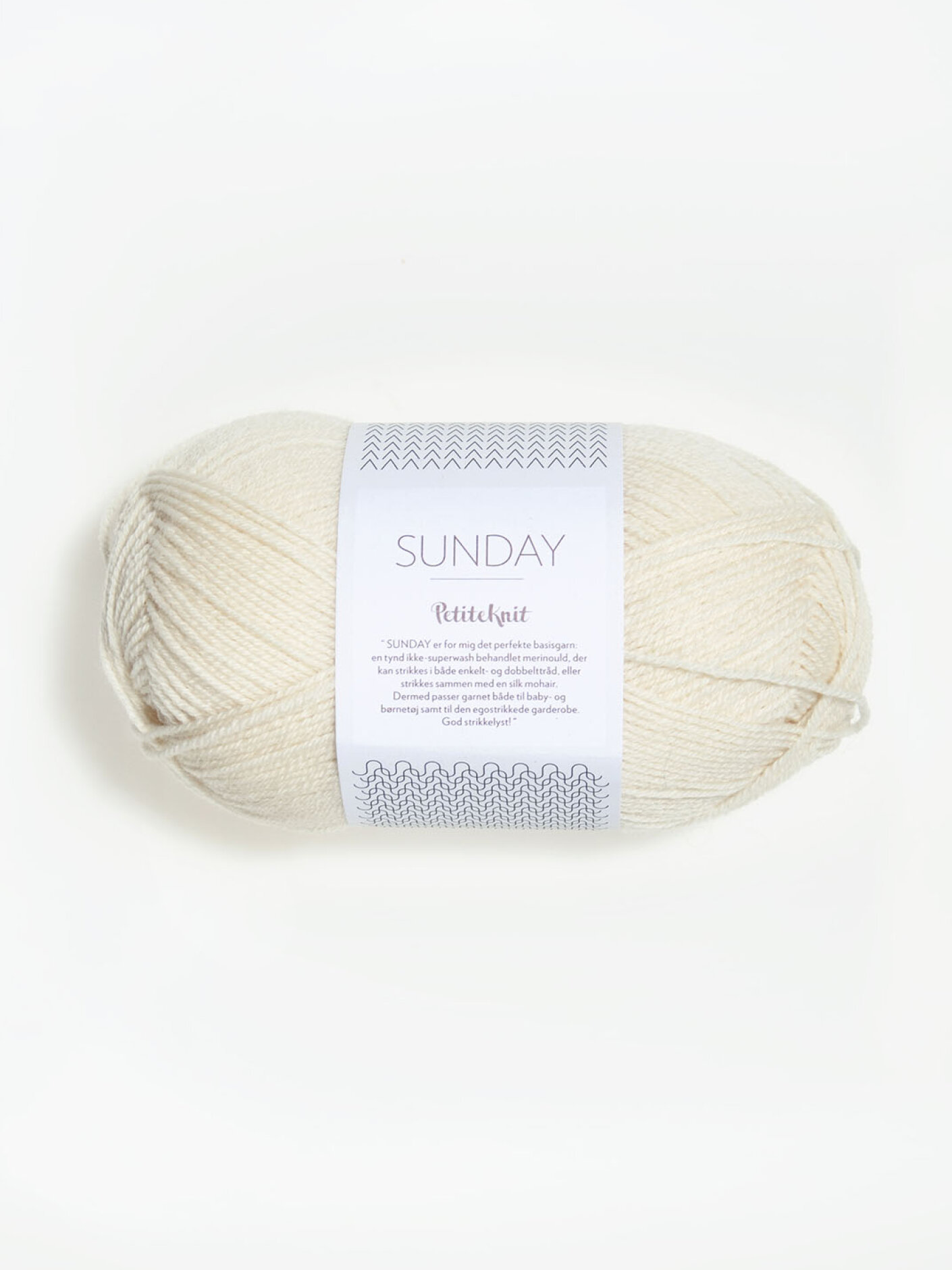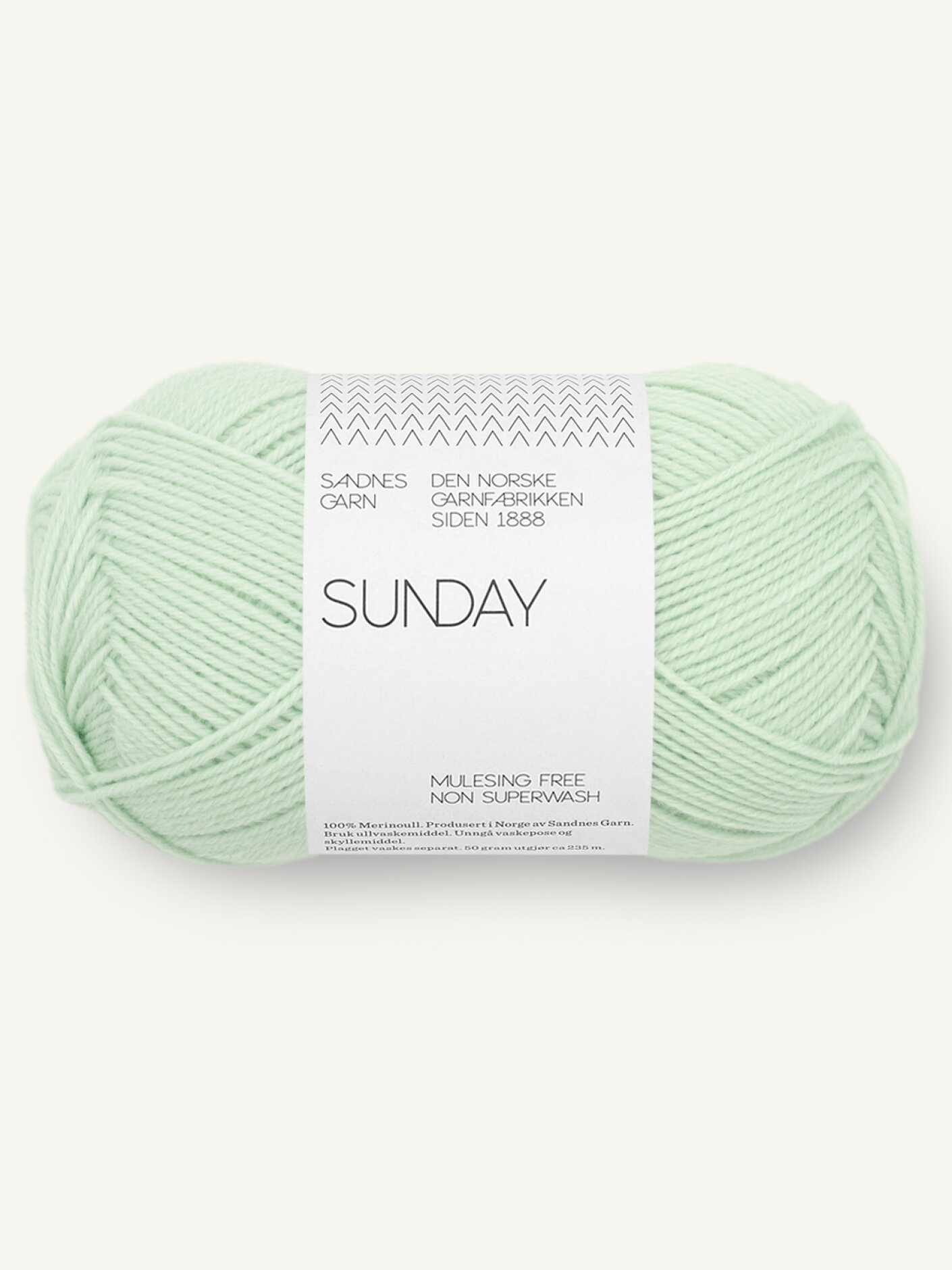 SUNDAY består af 100% merinould og er det perfekte basisgarn; en tynd ikke-superwashbehandlet merinould, som kan strikkes med både enkelt og dobbelttråd. Herudover fungerer garnet rigtig fint strikket sammen med andre kvaliteter - bl.a. Silk Mohair. Garnet anvendes rigtig fint til både baby, barn og voksen.