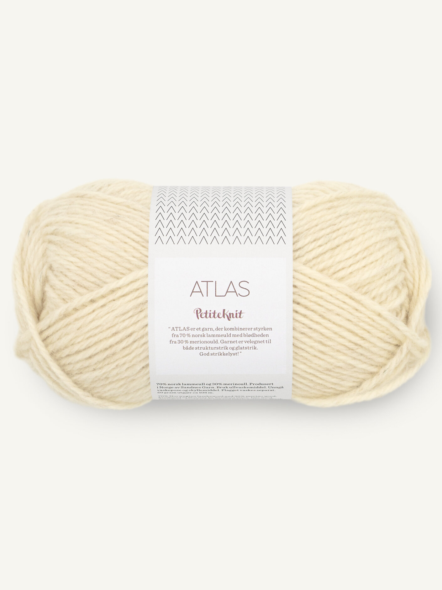 Atlas traditionelt uldgarn, men blandingen af lammeuld og merinould giver et lidt fyldigere garn, end traditionelt spundet uldgarn, og dermed et lettere resultat. Garnet kombinerer styrken fra lammeuld med blødheden fra merinould og er velegnet til både glat - struktur og mønsterstrik, hvor mønster- og strukturstrik fremstår tydeligt på det strikkede.