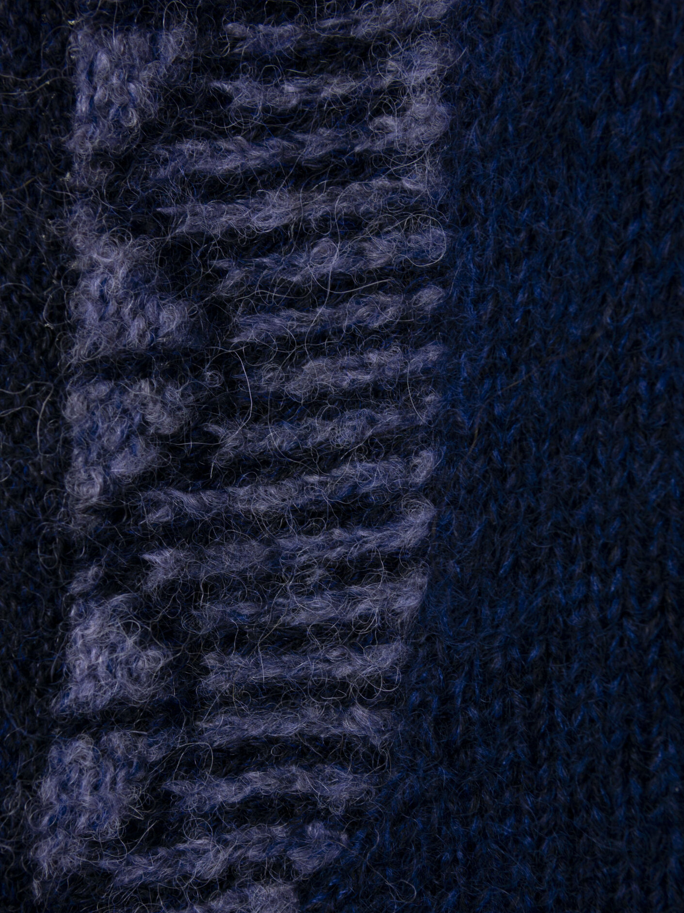 Garnet er Isager 'Trio 1' kombineret med Isager 'Highland Wool' og Isager 'Silkmohair' som den glatstrikkede bundfarve, og Isager 'Trio 1' kombineret med Isager 'Highland Wool' som dominant mønsterfarve og Isager 'Bouclé' Isager 'Silkmohair' som ikke-dominant mønsterfarve.