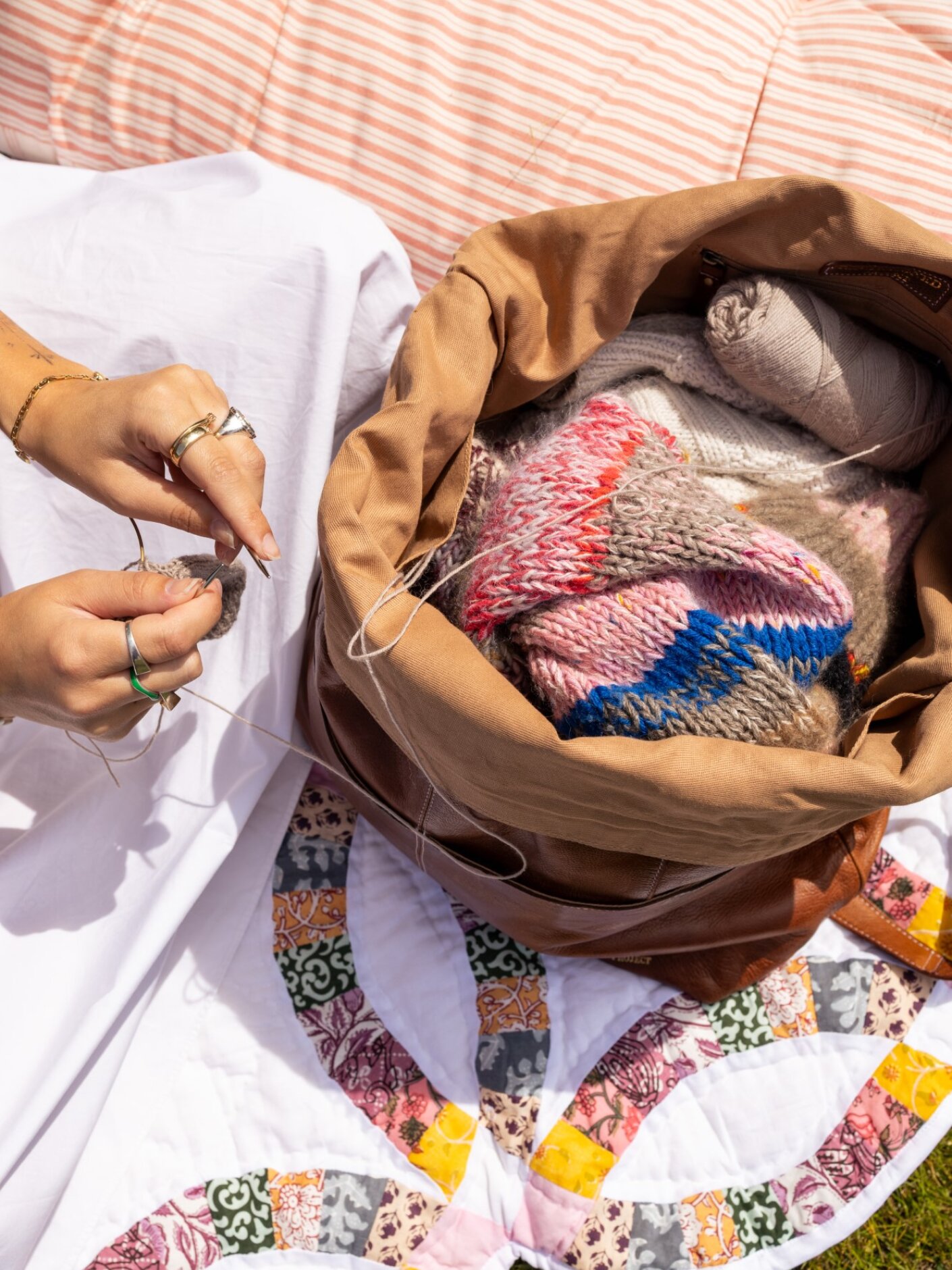 Opbevar og transportér dit strikketøj nemt i denne rummelige projekttaske.