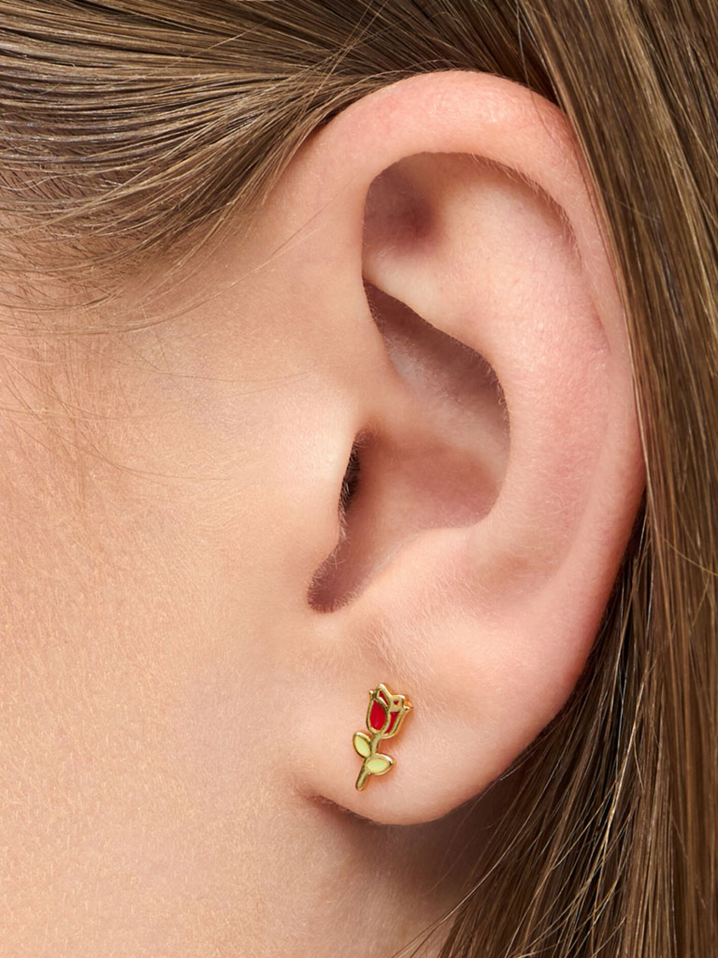 Denne fine roseørering tilføjer et romantisk strejf til dit look og er smuk alene eller stylet op ad øret sammen med andre små favoritter. En delikat detalje, der bringer følelsen af kærlighed med sig – hver eneste dag.