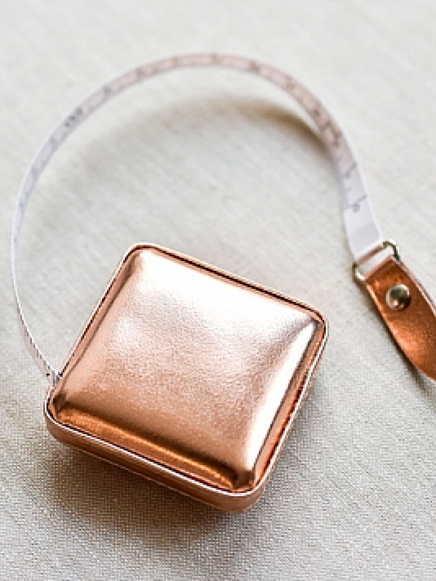 Ved et tryk på midten ruller båndet ind i etuiet igen