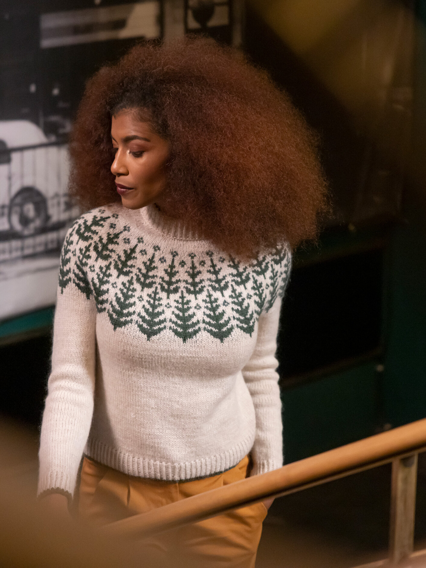 Dette er et strikkekit til at strikke Filcolanas julesweater 'Santa Baby' designet af Hanne Rimmen. Modellen er en 'klassisk' Hanne Rimmen-model, med et dekorativt bærestykke formet som to kranse af juletræer. Der gemmer sig en lille overraskelse på indersiden af den smukke halskant - mere siger jeg ikke nu!